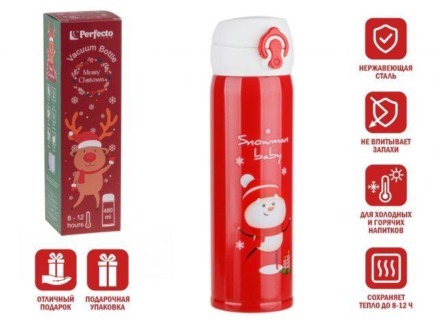 Термос, 480 мл, нержавеющая сталь, MERRY CHRISTMAS, алый, PERFECTO LINEA