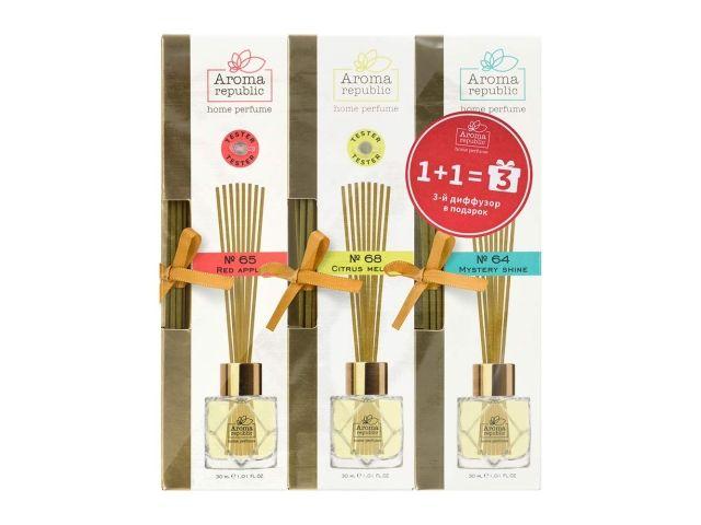 Ароматические диффузоры, промонабор (1+1)=3 по 30 мл, в спайке, ароматы в ассорт., AROMA REPUBLIC